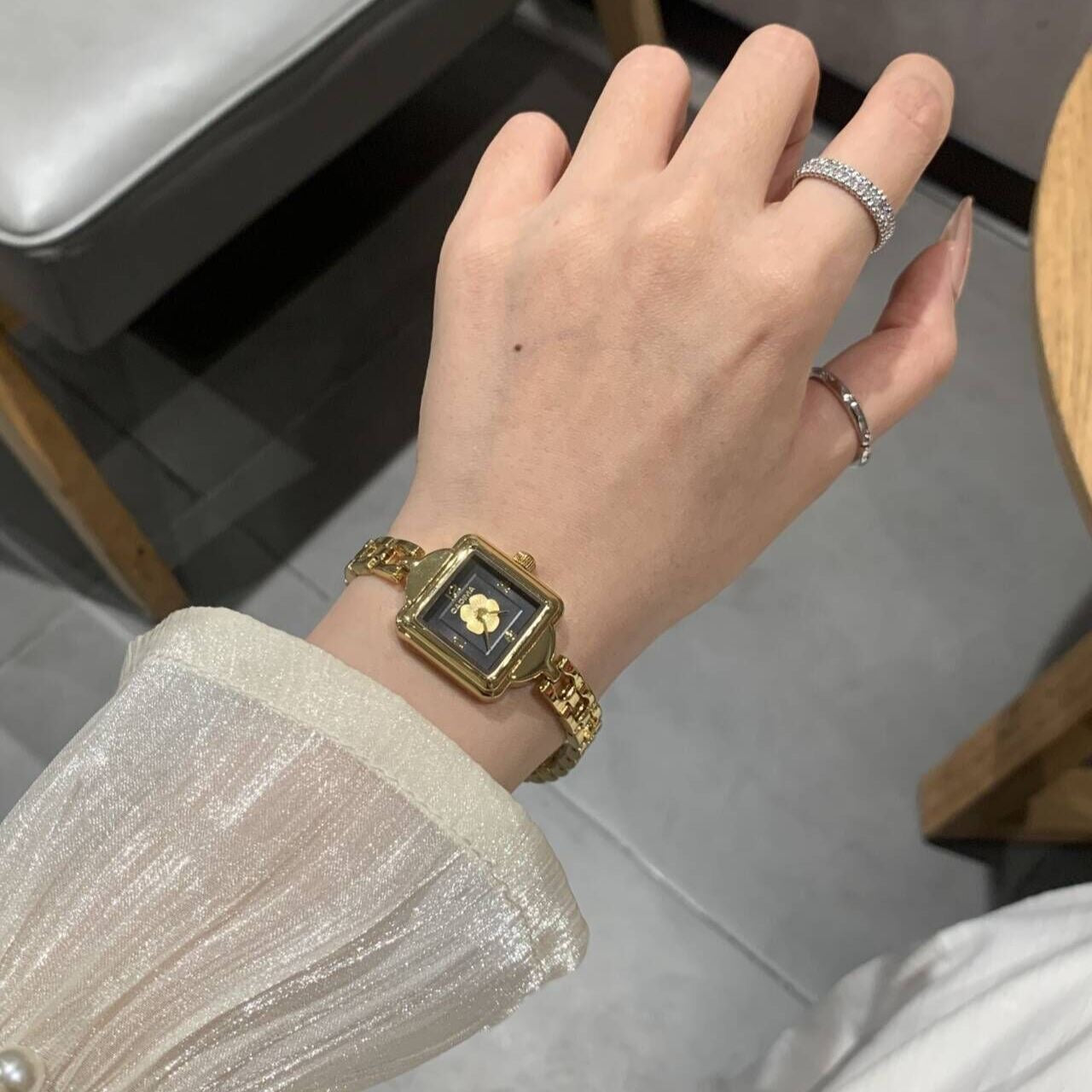 OLIVLA Square Gold-Tone Women’s Watch – Black Dial with Floral Center
